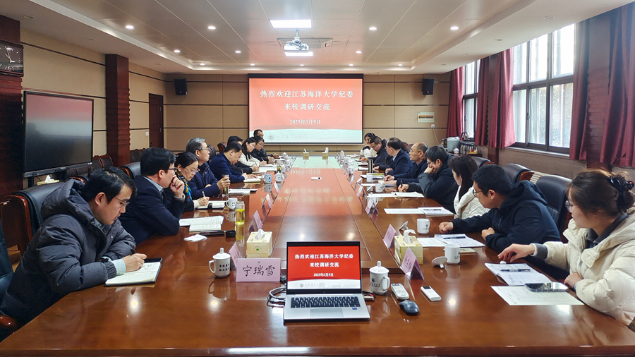 3月5日,江苏海洋大学纪委来我校调研交流。校纪委书记、派驻监察专员闾浩参加交流座谈会,党委巡察办公室负责人和校纪委全体人员参加会议。