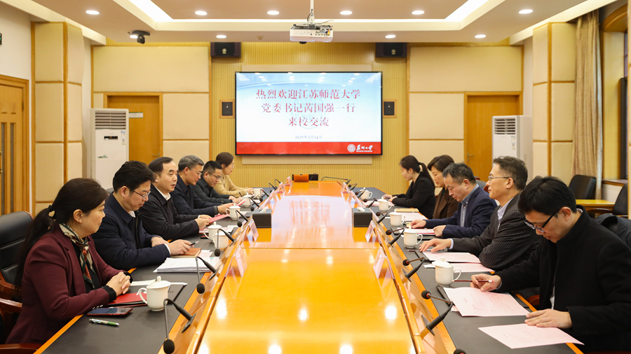 近日,校党委书记芮国强带队赴苏州大学、扬州大学开展专题调研。在苏州大学调研期间,党委书记张晓宏、副书记邓敏、副校长王云杰等出席调研座谈会。在扬州大学调研期间,党委书记丁建宁、副书记周如军等出席调研座谈会。学校相关职能部门负责人参与调研座谈。