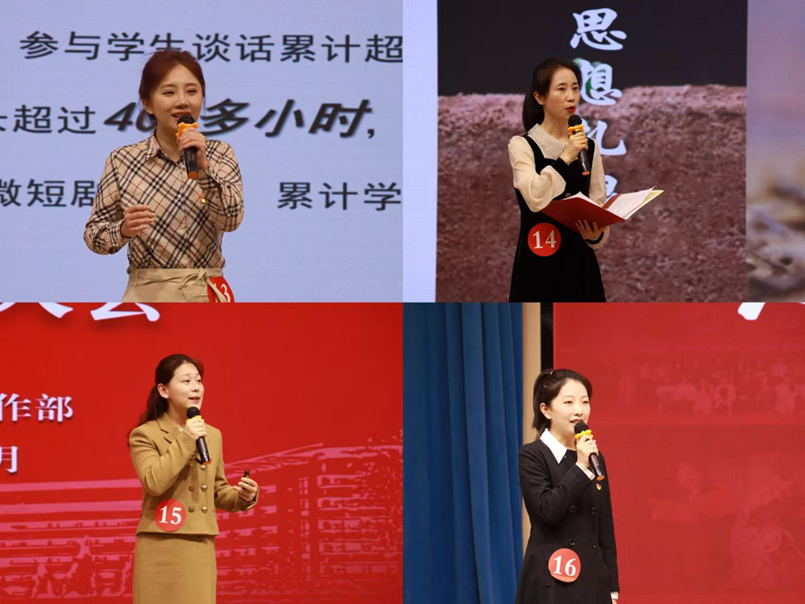 经个人申报、学院遴选推荐及材料初审,全校共有20名辅导员脱颖而出入围年度优秀辅导员现场展评环节。会上,参评辅导员从多维视角展开精彩汇报,生动再现了与学生同频共振、共赴成长的育人图景,深刻阐释了辅导员作为新时代青年“人生导师”和“知心伙伴”的使命担当,充分体现了思想政治教育工作的理论深度与实践温度,引发了现场评委与观众的深度共鸣与热烈反响。
