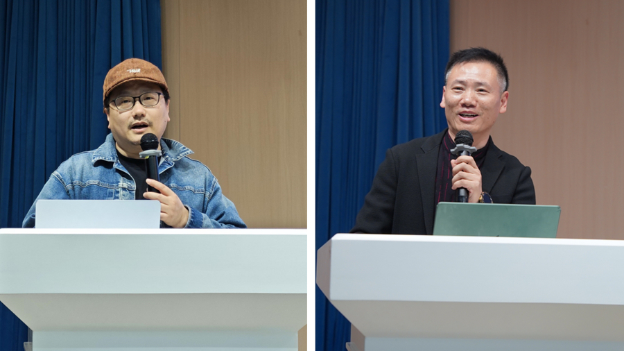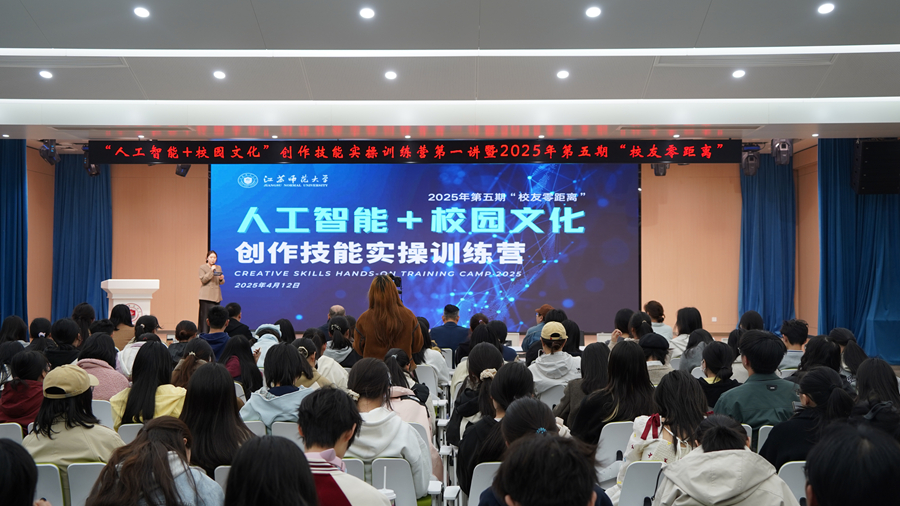 4月12日下午,2025年第五期“校友零距离”暨“人工智能+校园文化”创作技能实操训练营第一讲在泉山校区路演大厅举行。我校1999级市场营销专业校友、南京艺术学院教师彭奇奇,1999级美术学专业校友、南京新数质宁盟科技有限公司创始人宋高峰受邀重回母校,围绕AI创作与在场师生深入交流。