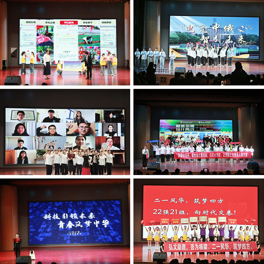 展评现场,从全校565个班级脱颖而出入围终评的23个候选班级围绕“班风正、学风好、学子优、班委强、荣誉多”等五个方面,以主题汇报、情景剧、朗诵和歌舞表演等多种表现形式展示了班级建设的突出成绩和特色亮点,充分展现了我校学子的蓬勃朝气和积极向上的精神风貌,也彰显了各学院在班级建设和学生教育培养方面的创新举措与显著成效。