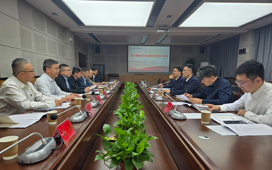 朱国军一行与宿豫区委常委、组织部长罗方等地方领导举行座谈,听取区人社局、区委人才办、团区委关于青年人才引进与培养的政策介绍。朱国军指出,宿迁数字经济、智能制造产业优势突出,与科文学院专业布局高度匹配,期待通过共建产业学院、定制化培养等方式实现人才链与产业链精准衔接。罗方表示,宿豫区将全力优化政策保障,推动政校企合作结出硕果,为青年学子提供更充分的实习机会、更优质的就业支持。