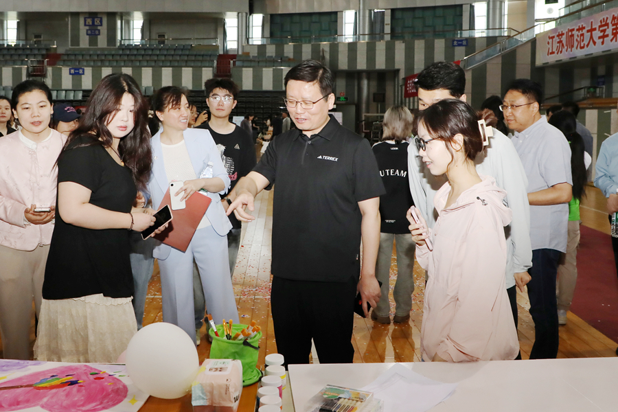 随着五彩缤纷的礼花彩带在空中绽放,江苏师范大学2025年第二十四届“5·25”心理健康教育文化月正式启动。启动仪式后,领导师生们一起沐光同行,共同参与各学院和校心理健康教育中心举办的特色心理活动。物理与电子工程学院开展的“心光手作、灯影传情”手工制作,校心理中心开展的“舒展身心、脆皮养生”艾草锤diy,敬文书院开展的“快乐加油站——心理游园会”,商学院开展的“勇敢爱自己”5·25师生快乐跑,生命科学学院开展的“向太阳借一束光”蓝晒手作等现场活动,吸引广大师生驻足参与,整个体育馆充满了欢快的笑声。
