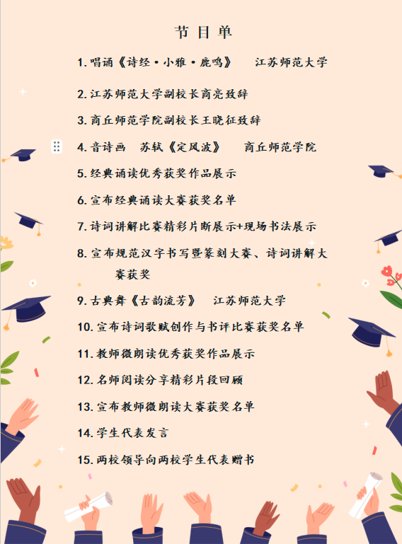 我校与商丘师范学院联合举办的第十五届中华母语节系列活动即将谢幕,6月21日(本周六)14:30在泉山校区马可音乐厅开展第十五届中华母语节经典项目巡礼暨闭幕活动,敬请关注!特邀请我校师生现场观摩,请提前20分钟入座。