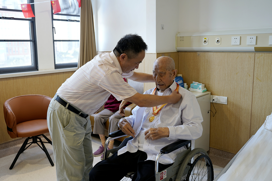在纪念中国人民抗日战争暨世界反法西斯战争胜利80周年之际,校党委书记芮国强走访慰问我校离休老教师、抗战老兵隋光同志,向这位103岁高龄的老英雄致以崇高敬意和诚挚问候。相关部门负责人参加慰问。