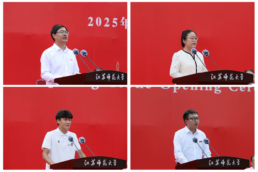 教师代表、物理与电子工程学院教授张乐,校友代表、我校汉语言文学专业1991届本科生、江苏省新海中学校长周艳,在校生代表、运动训练专业2024级本科生乔宇,新生代表、应用数学专业2025级博士研究生于子龙在典礼上讲话,勉励同学们主动探索、践行真知,以奋斗之青春书写崭新的人生华章。
