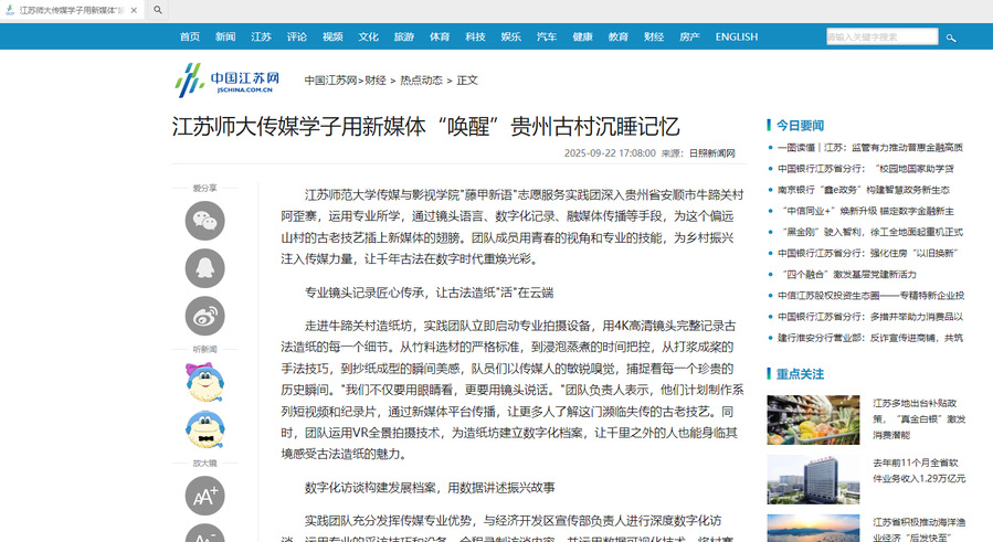 江苏师大传媒学子用新媒体“唤醒”贵州古村沉睡记忆