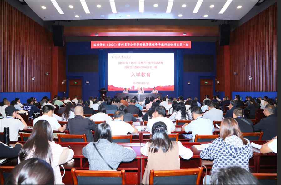 9月22日,“国培计划(2025)”贵州省中小学劳动教育课程骨干教师第一期培训班在我校开班。来自贵州省的200名劳动教育骨干教师参加培训班。校党委常委、副校长黄德志出席入学仪式。