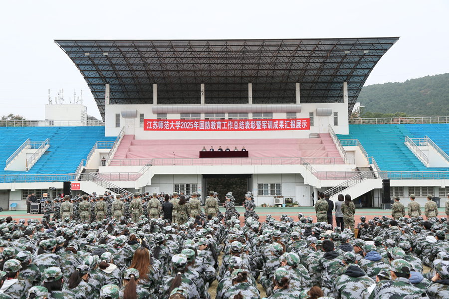 10月24日上午,2025年国防教育工作总结表彰暨军训成果展示活动在泉山校区田径场举行。校党委常委、副校长商亮,徐州军分区战备建设处处长李威,驻徐某旅副政委杜明亮、教导员刘江波,全体承训教官,学校相关部门负责同志,各学院党委副书记、负责国防教育工作的辅导员,泉山校区2025级全体参训学生和云龙校区参训学生代表共同参加活动。
