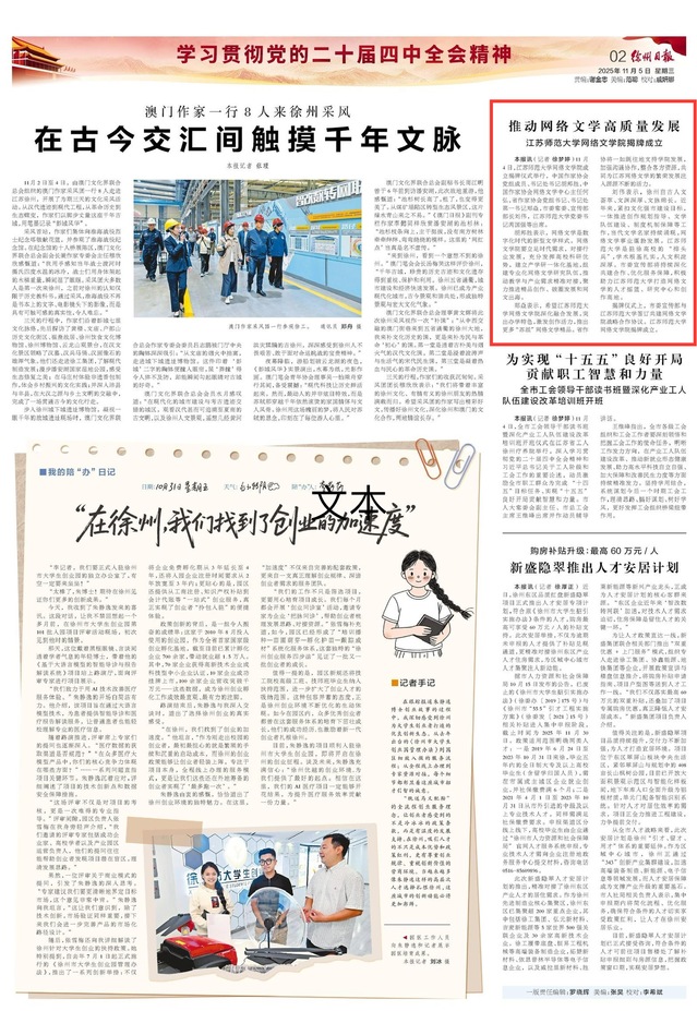 徐州日报11月5日报道我校网络文学院揭牌成立,内容如下: