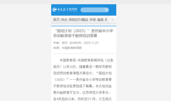 中国教育新闻网11月25日报道我校承办“国培计划(2025)”贵州省中小学劳动教育骨干教师培训项目,内容如下: