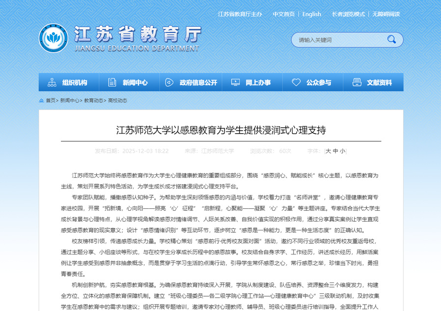 江苏师范大学以感恩教育为学生提供浸润式心理支持