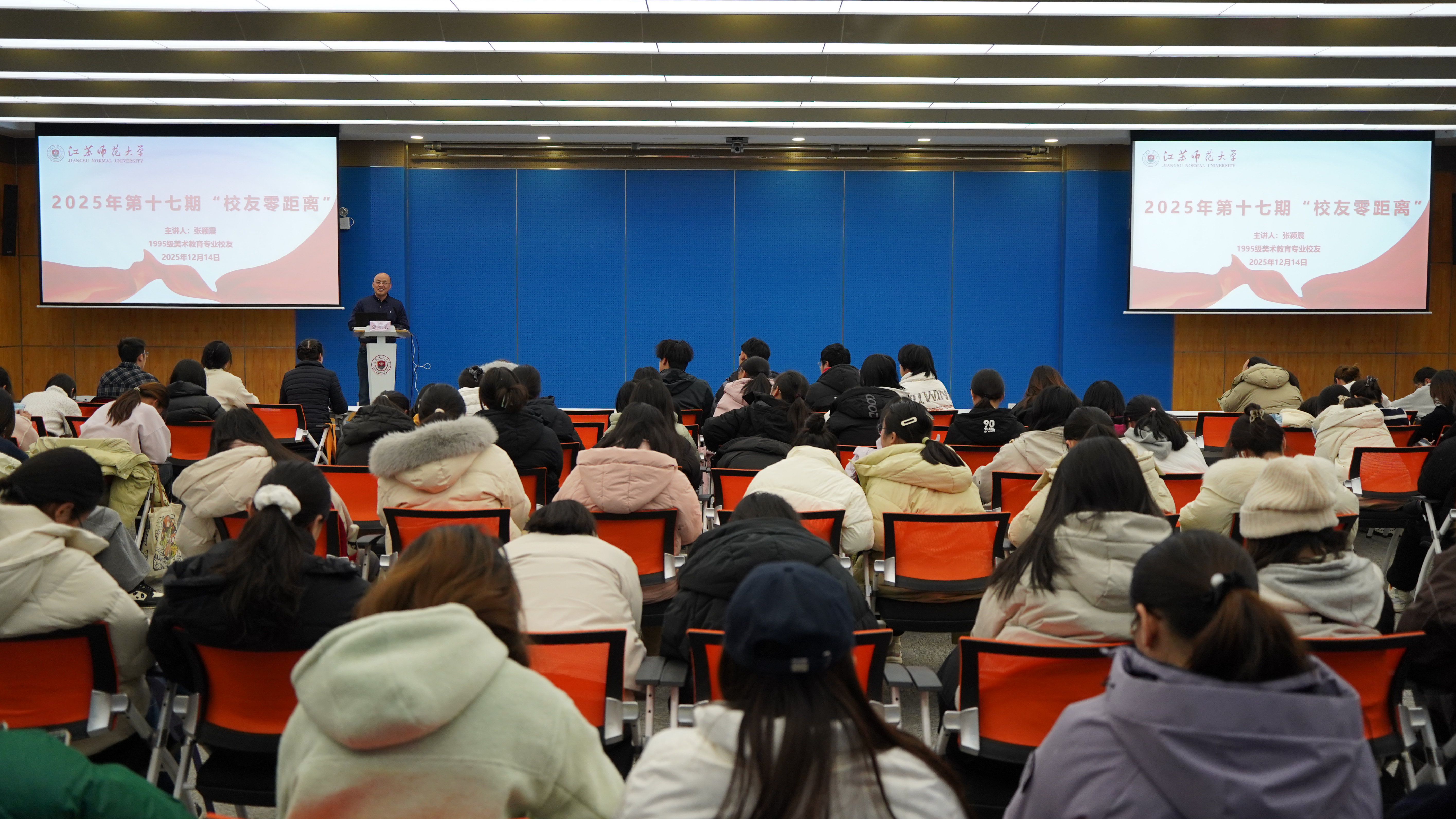 12月14日上午,2025年第十七期“校友零距离”在分析测试中心300会议室举行。我校1995级美术教育专业校友、国家级教学名师、江苏省特级教师、徐州市第一中学艺术学科主任张颖震以“走进教育的生活美学”为题,与在校学子展开深度交流,分享他在美育领域的思考与实践。