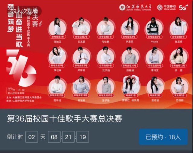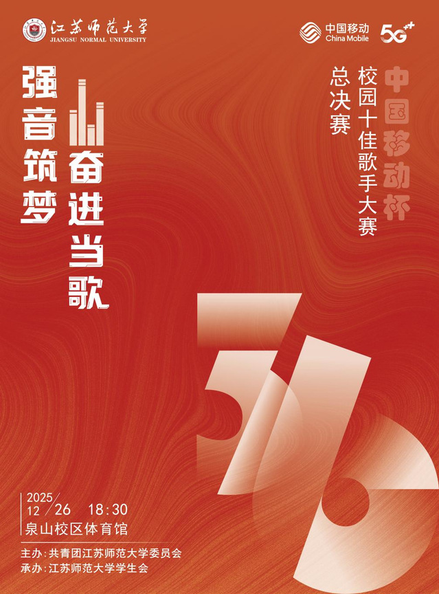 “强音筑梦 奋进当歌”第36届校园十佳歌手大赛总决赛将于12月26日(周五)18:30在泉山校区体育馆举行,敬请关注!请观赛师生携门票,并出示校园卡(学生证、工作证)或“爱师大”校园码检票入场,谢谢合作。
