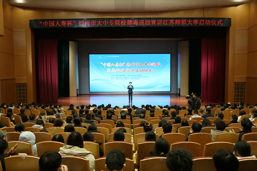 12月24日下午,由徐州市公安局禁毒支队、江苏师范大学新时代文明实践中心主办的“中国人寿杯”徐州市大中专院校禁毒巡回宣讲启动仪式在江苏师范大学举行。校党委常委、宣传部部长孟召学,徐州市公安局禁毒支队支队长葛晓华出席活动,全市大中专院校相关负责人及禁毒志愿者学生代表约400人参加活动。