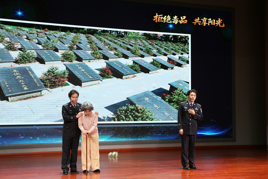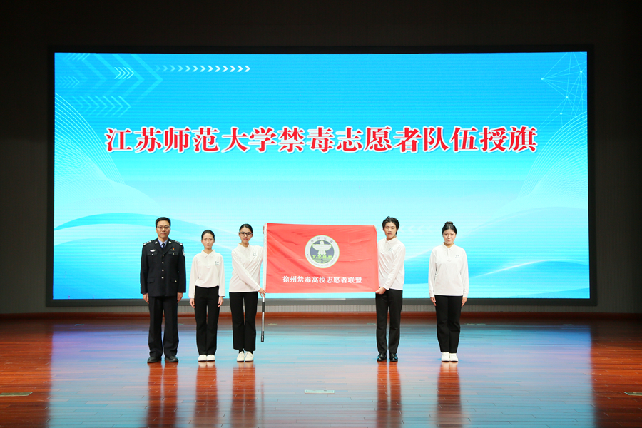 活动中,语言科学与艺术学院学生精心准备了精彩节目,《识毒揭真貌》《防毒明危害》《拒毒守己心》主题宣讲、情景剧《禁毒薪火传》以及朗诵《无毒中国说》赢得现场师生阵阵掌声。活动还举行了江苏师范大学禁毒志愿者队伍授旗仪式。
