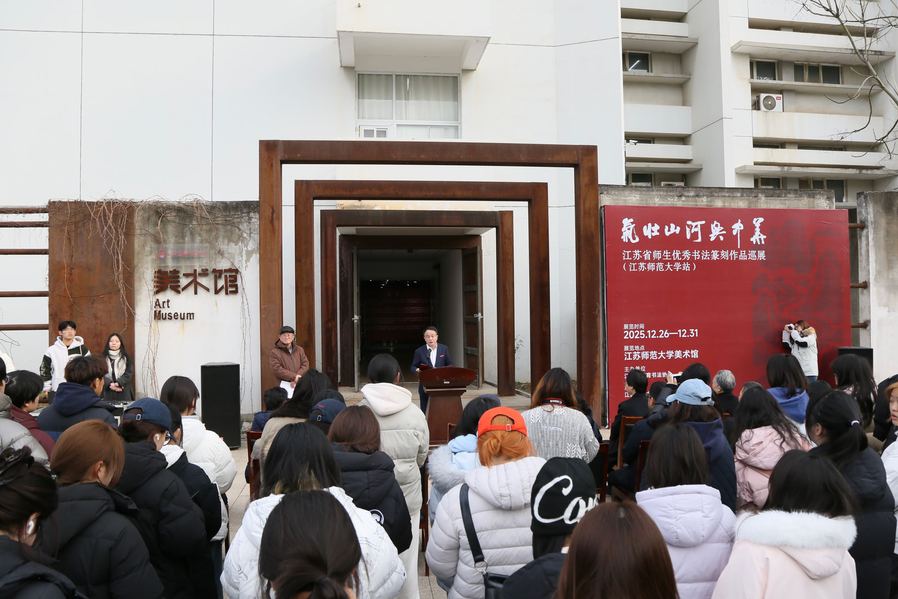 芮国强在开幕式上致辞。他指出,书法篆刻艺术是中华优秀传统文化的瑰宝,承载着中华民族的精神基因与审美追求。本次巡展汇聚了江苏省师生书法篆刻创作的精品力作,既是一场艺术的盛宴,更是一堂生动的思政课,充分展现了新时代江苏师生昂扬向上的精神风貌和精湛的艺术才华,为广大师生提供了近距离观摩精品、向名家请教学习的平台。希望广大师生以此次观展为契机,做时代精神的书写者、中华文明的传播者和文化根脉的守护者。