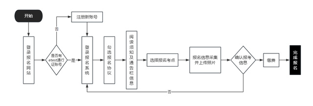 3.登录账号:报名需使用ETEST通行证账号。该账号为教育部教育考试院通用账号。已有账号者可直接登录;无账号者,需先完成注册再进行报名。