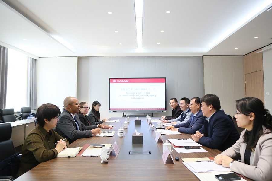 1月23日,古巴新任驻上海总领事Albert Panton León、一等领事Lisbet Díaz Rodríguez一行在徐州市政府外事办公室副主任朱静陪同下来我校访问交流。校长杜增吉出席活动,国际合作交流处、外国语学院负责同志陪同活动。