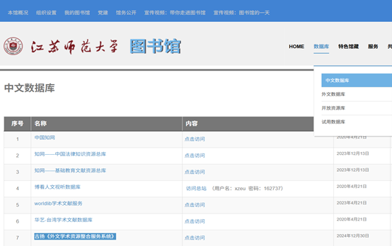 1.校内使用:校园网环境下,登录图书馆主页→进入数据库栏目中文数据库页面→选择“古扬外文学术资源整合服务系统”或直接访问产品网址:https://fars.gytec.net即可使用(学校IP范围内自动登录)。