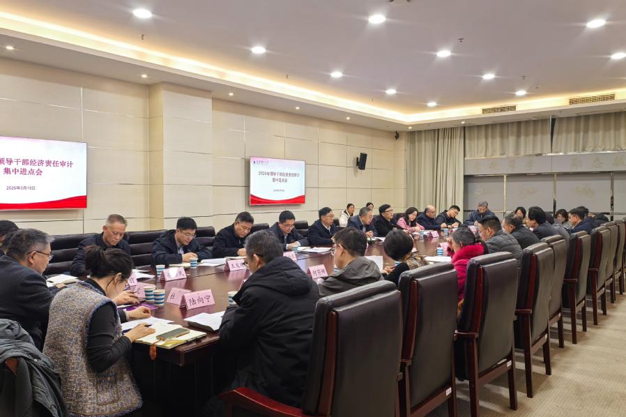 3月18日下午,学校召开2026年领导干部经济责任审计集中进点会。党委审计委员会主任、校长杜增吉出席会议,审计处负责同志、被审计的领导干部、离任审计单位现任主要领导和全体审计组成员参加会议。