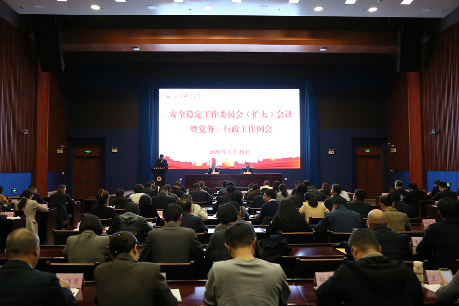 3月26日下午,学校召开安全稳定工作委员会(扩大)会议暨党务、行政工作例会。会议深入学习贯彻上级关于校园安全稳定工作重要精神,开展相关业务培训,推进重点工作任务。校党委书记芮国强主持会议,校长杜增吉就学科专业调整优化作专题部署。全体校领导,各院级党组织书记、副书记,各学院院长,各部门及直属业务单位主要负责人参加会议。
