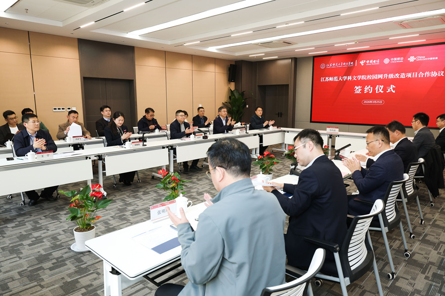 3月25日,科文学院与徐州电信、移动、联通三家运营商举行校园网升级改造合作协议签约仪式,校党委常委、副校长、科文学院理事长朱国军,科文学院院长张立荣、党委书记刘晓莲,中国电信徐州分公司总经理燕宪宏、副总经理乔飞,中国移动徐州分公司总经理许兴盛、副总经理吴浩,中国联通徐州分公司总经理范敬波、副总经理张明刚,科文学院相关领导、部门负责人以及三家运营商代表等参加了签约仪式。签约仪式由刘晓莲主持。