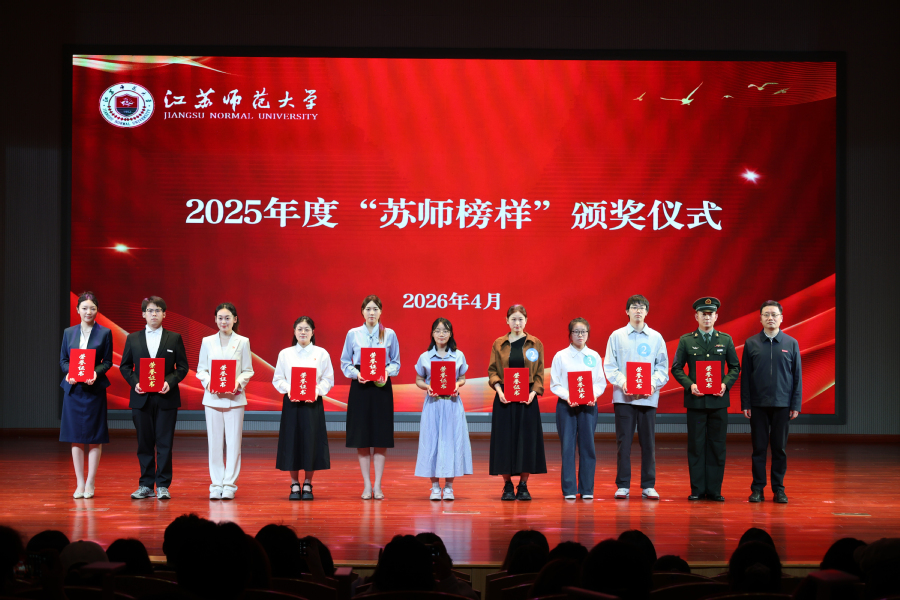 4月10日,江苏师范大学2025年度“苏师榜样”现场展评暨2025年立德树人奖学金颁奖典礼在马可音乐厅举办。校党委常委、副校长商亮,学校有关部门负责同志出席活动,各学院党委副书记、辅导员及师生代表现场观摩活动。