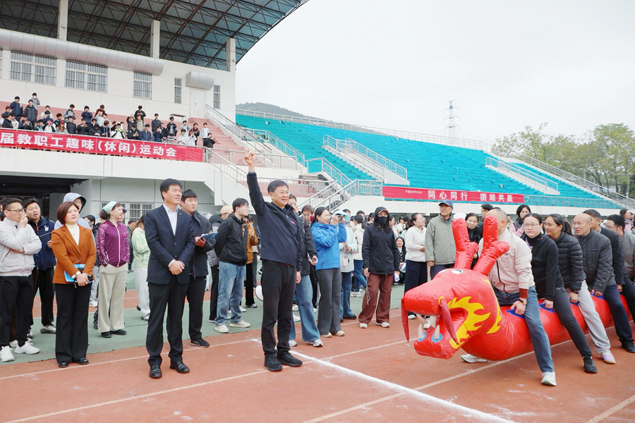 4月22日下午,由校工会、校体委主办的第十届教职工趣味(休闲)运动会在校田径运动场开幕,来自全校24个基层工会的954名教职工齐聚一堂,以运动为媒,以趣味为伴,在欢声笑语中展现新时代高校教职工的活力与风采。校党委副书记蔡国春出席开幕式。