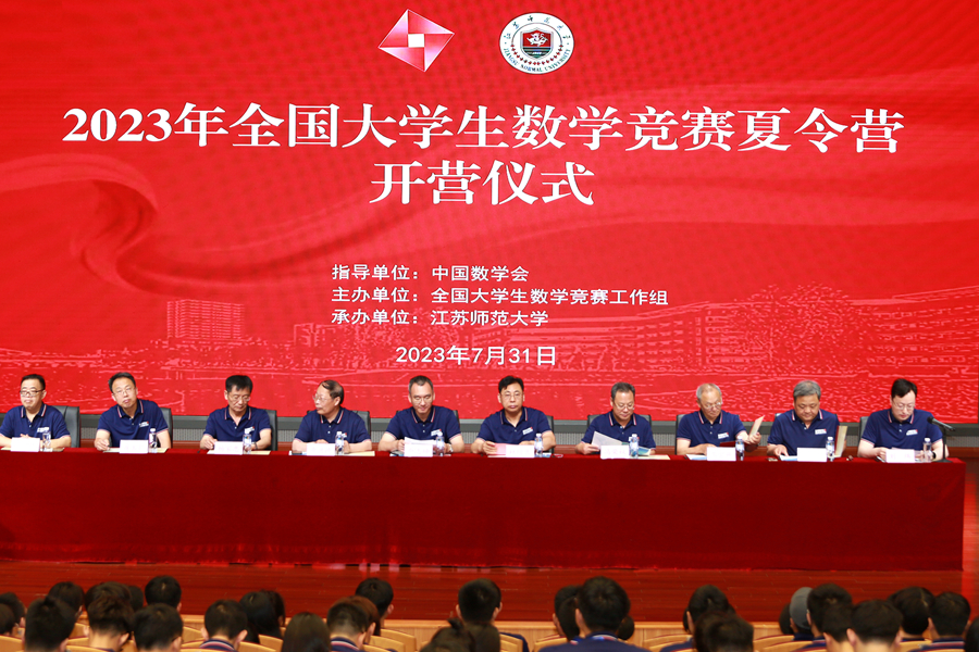 7月30日至8月5日,由中国数学会指导、全国大学生数学竞赛工作组主办,我校承办的2023年全国大学生数学竞赛夏令营在马可音乐厅成功举行。中国数学会数学竞赛委员会副主任、全国大学生数学竞赛工作组组长、北京航空航天大学教授佘志坤,江苏师范大学副校长杜增吉,江苏省工业与应用数学学会理事长、东南大学数学学院院长、欧洲科学院院士曹进德,全国大学生数学竞赛工作组副组长、北京大学教授冯荣权,北京数学会秘书长、北京大学教授杨家忠,北京航空航天大学教授高宗升,山东数学会副理事长、山东大学教授崔玉泉,北京地质大学数理学院院长高世臣,湖南交通工程学院党委副书记冯良贵出席开营仪式。