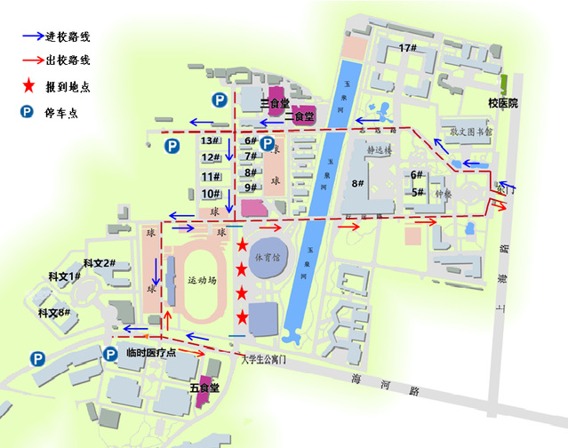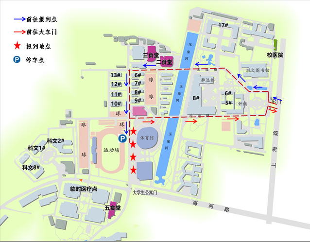 2.新生报到期间,至善路(民族餐厅至海河路大门之间路段)、海河路大门向西至中国银行路段实行临时交通管制。