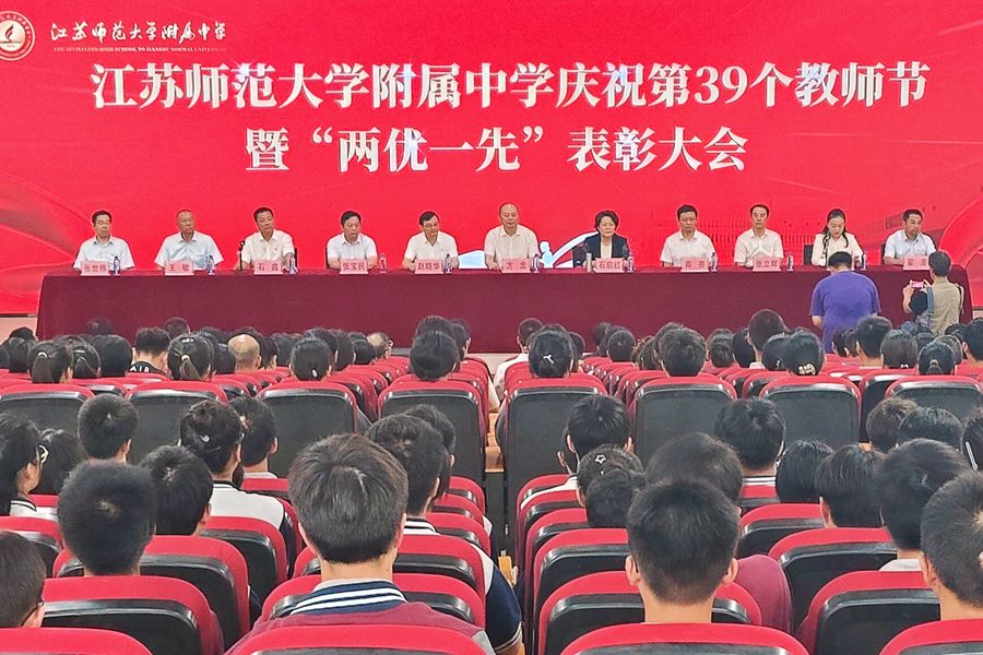 在江苏师范大学附属中学,方忠、商亮一行听取了附属中学办学情况汇报并与附中领导班子及教师代表开展座谈交流。在教师节表彰大会上,方忠回顾了江苏师大与附属中学的历史渊源并简要介绍了师大为附中在广纳优秀人才和争取优质资源上所做的工作。方忠还围绕努力办一所人民满意的学校、努力建设一所特色鲜明的高品质示范高中、传承打造高品位校园文化等方面提出希望和要求。
