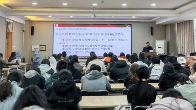 10月26日上午,校友联谊会办公室、物理与电子工程学院在泉山校区7号楼327会议室共同举办2025年第十四期“校友零距离”活动。我校1985级物理专业校友、江苏省特级教师、二级教授、江苏省木渎高级中学原党委书记、校长张飞,以“师者匠心 薪火相传——师范生如何走向教师职业”为题,与在校学子展开深度交流,分享教育生涯感悟,为师范生成长答疑解惑。 活动伊始,张飞校友以温暖的求学往事为引,迅速拉近了与在场同学的距离。他结合自身从青年教师到省特级教师、从一线课堂实践者到资深教育研究者的成长之路,深入剖析教师职业发展的核心逻辑。围绕“教师职业内核”这一主题,结合数十年教育实践,张飞表示,教师的专业生命需以“探究精神”和“教育信念”为双核心,既要站稳讲台、教好知识,更要心怀热爱、育好新人。针对师范生的成长需求,他建议同学们一要筑牢专业知识根基,打牢职业发展基础。二要积极参与教学实践,在课堂历练中提升核心教学本领。三要养成反思习惯,在总结与沉淀中升华教育智慧。他鼓励同学们以匠心守护育人初心,在未来的教育道路上笃定前行、行稳致远。 互动环节,同学们围绕“师范生如何高效利用学校资源提升教学基本功”“新时代背景下如何成长为‘能教书、会教书、教好书’的优秀教师”等问题积极提问,张飞结合自身经历逐一细致解答,现场气氛温馨而热烈。