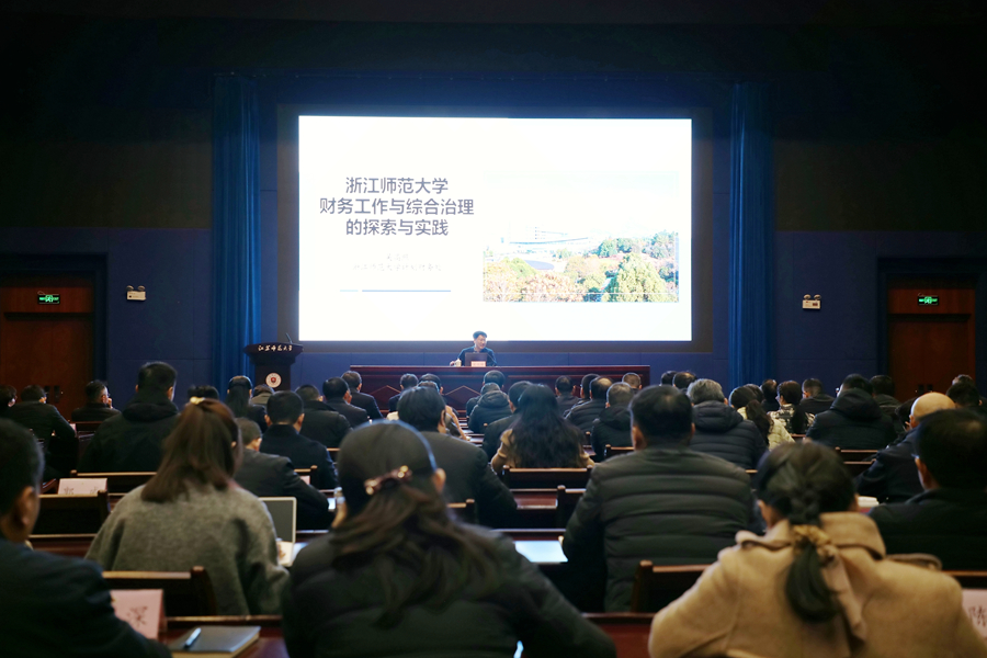 为全面提升我校领导干部的现代大学治理能力与综合素养,11月19日下午,我校举办领导干部专题培训会,特邀浙江师范大学计划财务处处长吴高照作专家报告。全体校领导,各学院党政负责人,职能部门主要负责人以及各学院负责财务工作、对外合作工作的分管领导近100人参加专题培训。报告由校党委常委、副校长朱国军主持。 培训中,吴高照围绕《浙江师范大学财务工作与综合治理的探索与实践》主题,以其学校卓有成效的改革实践为蓝本,系统分享了他们在财务工作创新与综合治理能力提升方面的先进理念与实践经验。报告全领域、全方位展示了浙江师大在财务工作、综合治理和对外筹资方面的先进理念、创新举措和宝贵经验。报告对于我校改革发展具有很强的借鉴意义和参考价值,为我们破解工作中的难点、堵点问题提供了有益启示。 朱国军指出,我们要主动对标先进,将浙江师大的先进经验与我校的工作实际相结合,切实将学习成果转化为推动工作的强大动力。他强调,在学校层面要聚焦关键、深化改革,以综合考核改革、绩效工资制度改革、校院两级财务分配制度改革为突破口,推动学院发展走向“主动创造”的道路;在部门层面要抢抓机遇、主动作为,尊重历史基础、把握主要矛盾,架构起适合我校实际的系统性的制度解决方案;在学院层面要双轮驱动、攻坚克难,一手抓资源拓展,一手抓转型提档,增强服务经济社会发展的能力,凝炼学院的核心竞争素养。朱国军要求,全体干部要凝聚起进一步深化改革的共识,加强部门联动和制度协同,共同推动我校综合治理水平迈上新台阶,为学校党建和高质量发展提供更加坚实的保障。