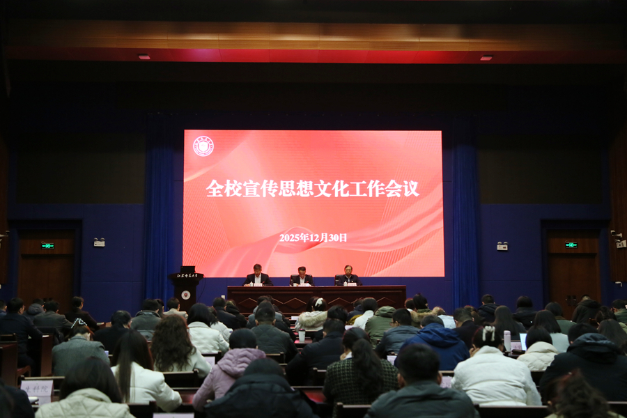 12月30日下午,江苏师范大学宣传思想文化工作会议召开。会议充分肯定了“十四五”期间学校宣传思想文化工作融入大局、服务发展所取得的显著成效,深入解读了宣传思想文化“十五五”规划报告。校党委书记芮国强,校党委副书记、校长杜增吉,校党委副书记蔡国春出席会议,各院级党组织、党群部门相关负责同志和发言单位代表参加会议。杜增吉主持会议,蔡国春就“十四五”期间宣传思想文化工作总结、当前形势、“十五五”专项规划要点作简要报告。 本次会议的主要任务是全面贯彻落实党的二十大和二十届历次全会精神,深入学习贯彻习近平文化思想,总结回顾“十四五”以来学校宣传思想文化工作成效,剖析当前工作形势与任务,部署下一阶段重点工作,为学校高水平大学建设汇聚磅礴精神力量。 芮国强在会上讲话。他指出,做好新时代学校的宣传思想文化工作,必须牢牢把握正确的政治方向、工作导向和价值取向。要坚定不移加强党的全面领导,坚定不移坚持以师生为中心,坚定不移坚持守正创新、系统观念。要聚焦“国之大者”,在提升战略叙事能力上实现新突破,聚焦“深度融通”,在壮大主流舆论声势上塑造新优势,聚焦“筑牢底线”,在维护意识形态安全上展现新作为,聚焦“价值转化”,在深化文化育人、服务社会上取得新成效。 芮国强强调,高质量做好宣传思想文化工作,使命光荣、责任重大。要以习近平文化思想为指引,紧扣“举旗帜、聚民心、育新人、兴文化、展形象”的使命任务,把握“七个着力”实践要求,高擎思想旗帜,壮大主流舆论,深耕文化沃土,培育时代新人,持续为学校铸魂、为发展赋能,共同谱写高质量发展的崭新篇章。 会上,党委学生工作部(学生工作处)、党委教师工作部(人事处)、教务处、马克思主义学院、校团委、教育科学学院(教师教育学院)、汉文化研究院、国际学院等8家单位相关负责同志结合工作实际分别作了交流发言。