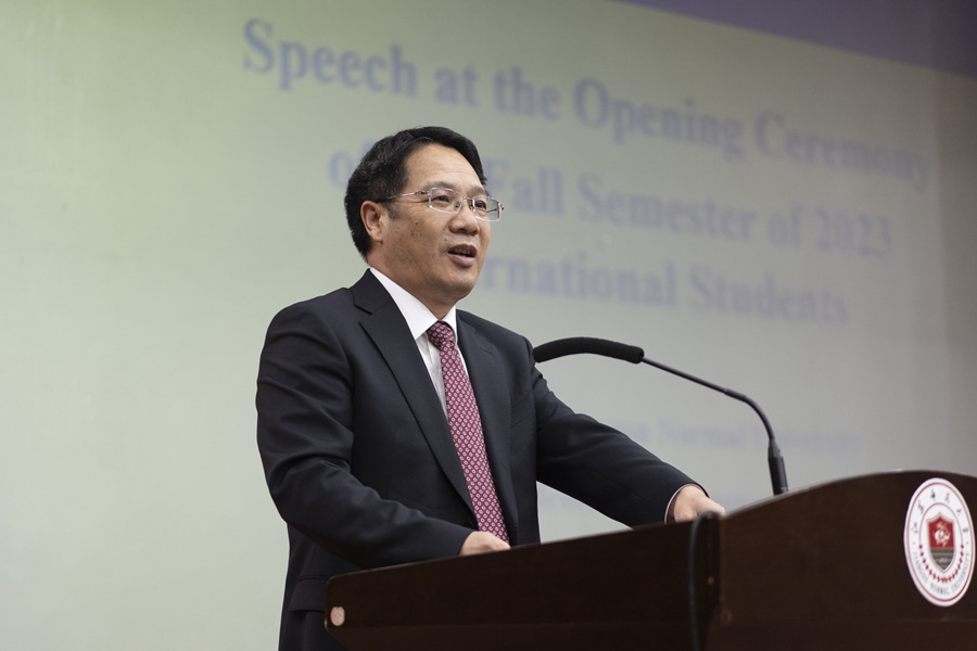 周汝光在典礼上致辞,代表全体教师向2023级国际新生的到来表示诚挚欢迎和热烈祝贺,并向他们介绍了江苏师范大学的发展概况和办学特色。周汝光希望同学们尽快适应新环境,他勉励大家:要坚持潜心向学,成为时代需要的新型国际化人才;要加强友爱互助,成为心怀大爱的友谊使者;要促进民心相通,成为文明互鉴的桥梁纽带。