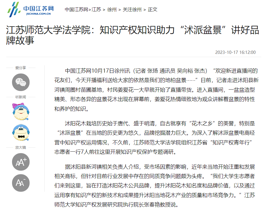 江苏师范大学法学院:知识产权知识助力“沭派盆景”讲好品牌故事