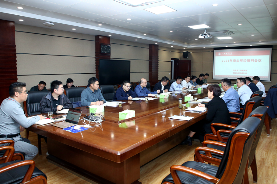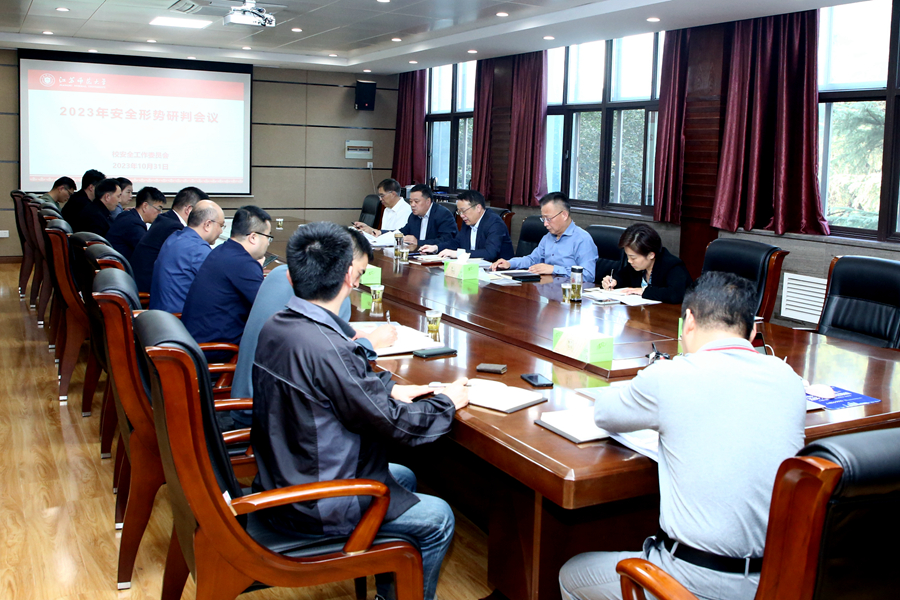 张玉勤作总结讲话。他指出,召开安全形势研判会议,开展安全管理专题学习,分析学校安全管理难点,研判校园安全形势,对于进一步明确安全管理责任,做好学校安全管理工作具有重要意义。他强调,学校安全是事业发展的基础和保障,各相关部门要深入学习贯彻习近平总书记关于安全生产的重要论述,要时刻绷紧安全之弦,提高思想认识,层层压紧安全责任,以“万无一失”的防范举措防止“一失万无”的严重后果;要严格遵守《安全生产法》《江苏省消防条例》等法律法规,聚焦消防安全、治安安全、实验室安全、食品及饮用水安全、交通安全、施工安全等重点领域,强化协同,全面排查治理校园安全隐患,实现安全隐患整改“清死角、除空白、扫盲区”;要进一步提升应急处突水平,不断完善所负责业务领域内的应急预案,确保符合实际、可操作性强,遇有重要紧急情况,要及时采取有效措施妥善应对。