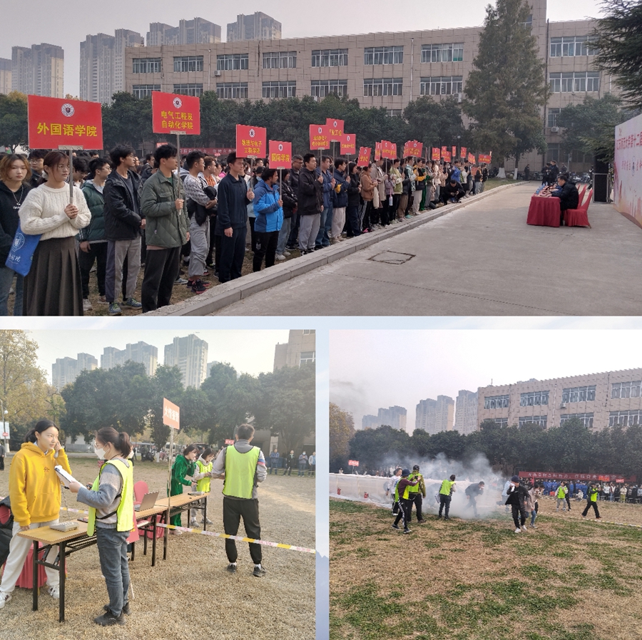 本届消防运动会围绕“预防为主,生命至上”这一主题,在项目涉及上,将知识性、体验性和竞技性有机融合,将消防安全知识和技能实操有机结合。运动会共设有火情报警、火场逃生、抢救伤员、连接水带及油盆灭火五个单项,由师生混合组队,接力完成。赛场上,选手们展现出了出色的消防技能和团队协作精神,使大家共同学习了一堂消防安全公开课。经过激烈角逐后勤集团、文学院、敬文书院、体育学院、智慧教育学院、法学院、教育科学学院、科文学院荣获本届消防运动会前八名。现场还设置了烟道逃生、紧急救护、逃生绳结等体验项目,发放消防安全知识手册300余份,让师生们更加深入地了解消防安全知识。市消防救援支队参会领导充分肯定了此次消防运动会,并就火灾事故预防及突发火灾应急处置等有关知识与技巧,为大家进行了专业讲解与展示。