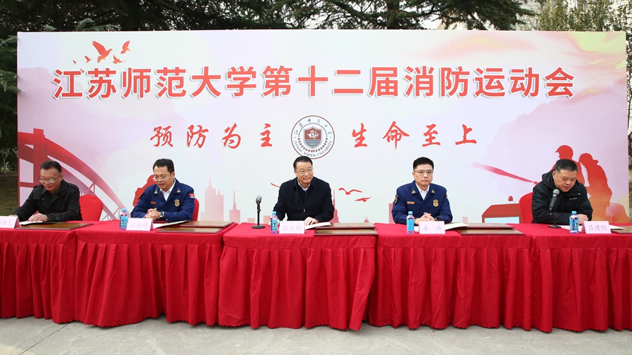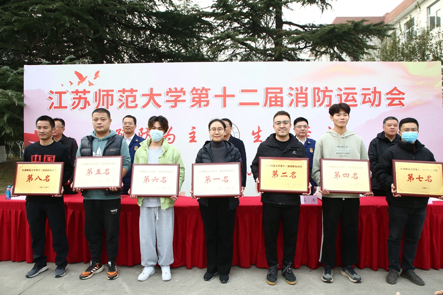 11月22日下午,学校第十二届消防运动会在泉山校区敬文图书馆北侧足球场成功举办。校党委常委、副校长张玉勤,徐州市消防救援支队副支队长姜浩,火调技术科科长汪永路,校保卫处、体育学院等单位有关同志出席活动。全校30个代表队500余名运动员参加了比赛。
