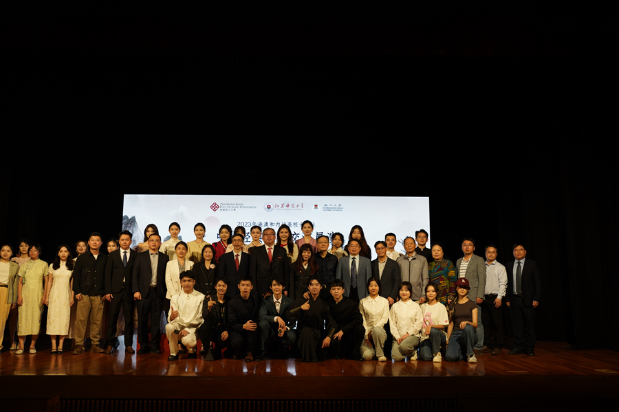 11月13日下午和16日下午,港澳展演活动分别在香港理工大学蒋震剧院和澳门大学黑盒剧院举行开幕典礼。香港理工大学副校长赵汝恒教授、人文学院院长李平教授、中文及双语系系主任萧慧婷教授,我校原副校长钱进教授、语言科学与艺术学院副院长朱祖德教授,澳门大学人文学院院长徐杰教授、助理院长张月教授、李丽青教授等作为三地活动主办方的代表出席两地展演开幕式并致辞。