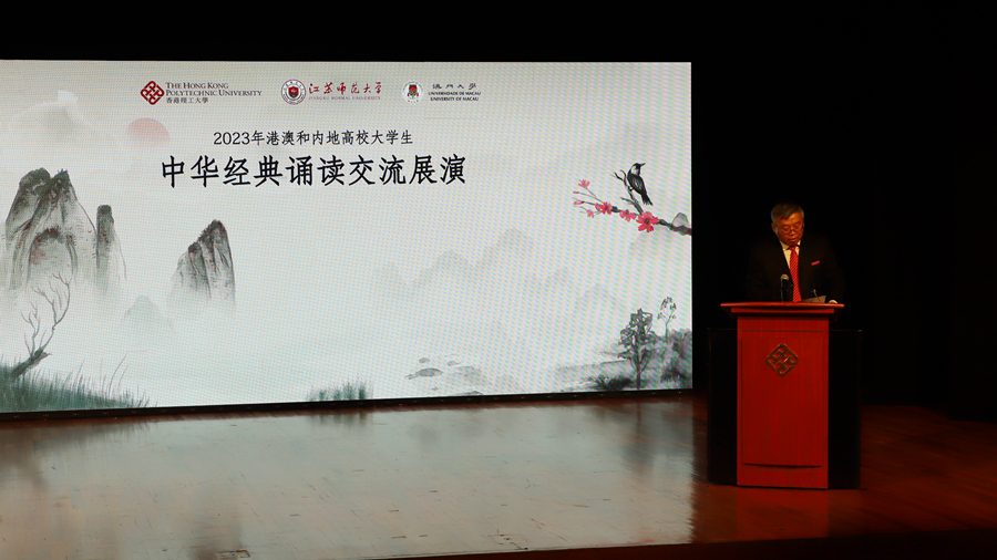 10月28日,习近平总书记在中共中央政治局第九次集体学习时再次强调,要不断构筑中华民族共有精神家园,不断增强对中华民族的认同感和自豪感,以语言相通促进心灵相通、命运相通。中华经典诗文作为中华优秀传统文化的瑰宝,蕴藏着中华民族的价值追求、精神品格和审美情趣,是中华民族最基本的文化基因之一,是内地和港澳青年共同的精神家园。为让更多的青年大学生感受到中华文化的魅力,持续促进三地青年的交流交心,实现国家民族血脉的流通,11月13日至16日,在教育部港澳台办和语言文字应用管理司的支持和指导下,由江苏师范大学、香港理工大学和澳门大学共同举办的2023年“港澳和内地高校大学生中华经典诵读交流展演”香港站和澳门站展演与文化交流活动分别在香港理工大学和澳门大学举行,来自港澳和内地的大学生为港澳地区的青年共同呈现了两场精彩的中华经典诗文诵读演出。