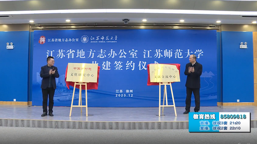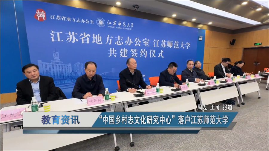 徐州电视台和无线徐州12月4日以视频新闻形式报道我校与江苏省地方志办公室共建签约,成立江苏师范大学乡村志研究中心。包内容见视频链接:(http://share-plus.huaihai.tv/folder17/folder18/folder7203/2023-12-04/3v3zYkG9KBK4Q2wn.html?_hgOutLink=vod/newsDetail&id=1505160)报道截图: