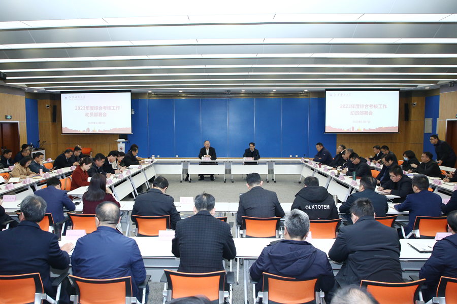 12月7日下午,学校2023年度综合考核工作动员部署会在分析测试中心300会议室召开。校党委书记方忠,校党委副书记、校长周汝光出席会议,各二级学院党委(党总支)书记、院长,机关及直属业务单位主要负责同志参加会议。周汝光主持会议。