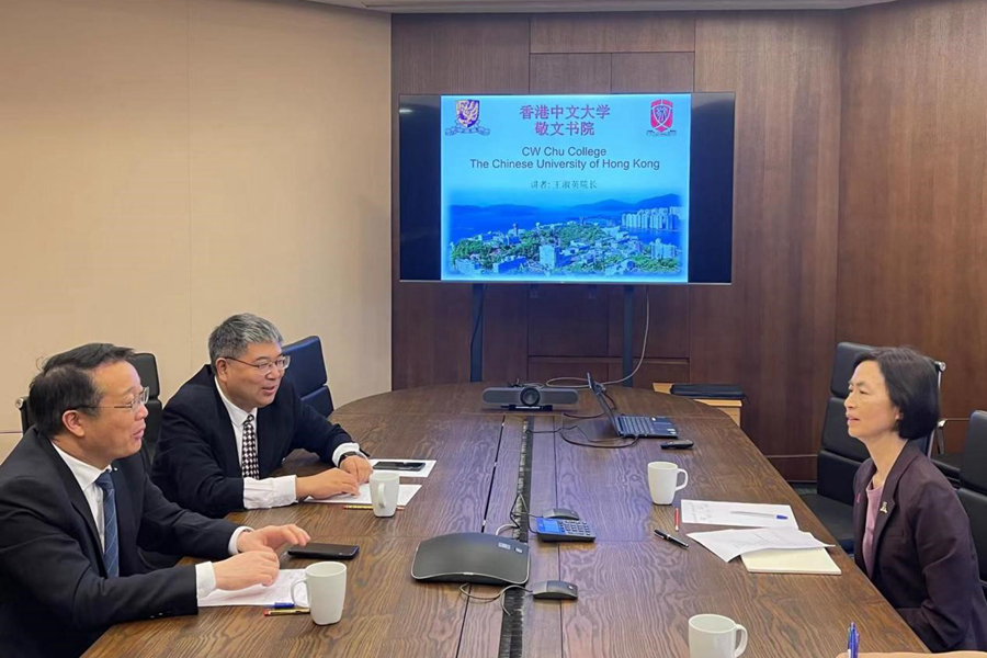 随后,代表团到香港中文大学敬文书院交流访问,受到了敬文书院院长王淑英的热情接待。双方就敬文书院建设进行了深入交流。张玉勤表示两校敬文书院在学生的高尚品德塑造、博雅气质提升、创新能力培养、领导能力增强、国际视野拓展等方面起到明显的积极作用,期待双方今后深化合作,为两校敬文书院高质量发展做出贡献。