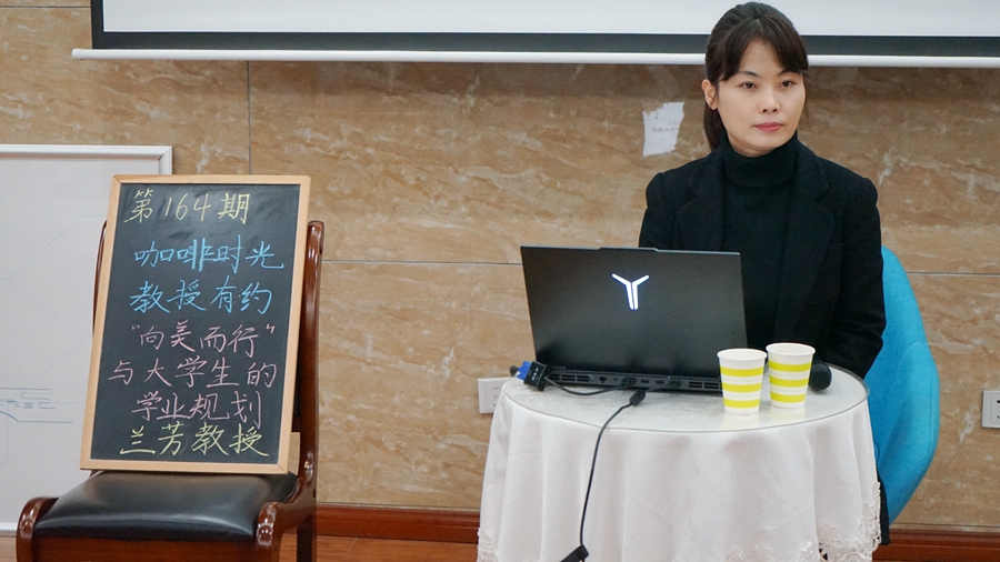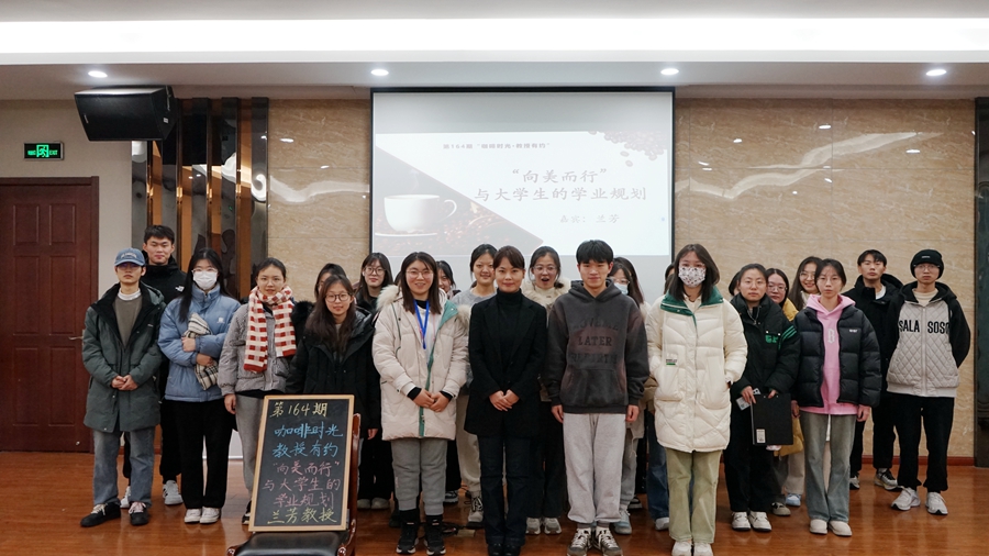 12月14日下午,第164期“咖啡时光·教授有约”活动在江苏师范大学泉山校区心理团辅室举行。兰芳教授就“‘向美而行’与大学生的学业规划”这一主题与在座同学进行交流。