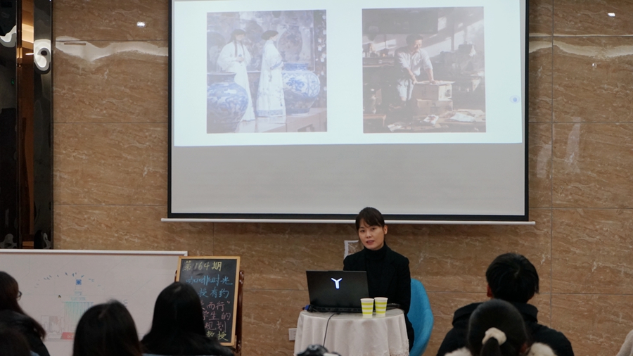 兰芳从“美”的定义开始本次讲座,通过AI绘制的图片让同学们感悟美的通用性,以此鼓励同学们去认识美、欣赏美。兰芳认为人类社会发展的进步也推动美的进步,让美的生成更简洁化。她根据一组文创图片让同学们意识到,美应用在实用的日常用品上时还能推广民族文化。她提议当代大学生要有敏锐的眼光,去发现美的人和事,要热爱环境、热爱专业。随后,兰芳让同学们欣赏了从不同视角拍摄的独属于师大校园的美,带领同学们认识生活中具有经典性的美,结合徐州汉文化城市IP卡通形象和一些文创作品,与同学们一起探索艺术美。最后,兰芳就一位同学的学业规划,结合自己的大学生涯,解释王国维《人间词话》里的最经典的三句话,以此启示同学们,发现美不难,执行、转化成艺术更难;我们的社会发展离不开美,有了我们对美的发现,我们的生活才更加美好。