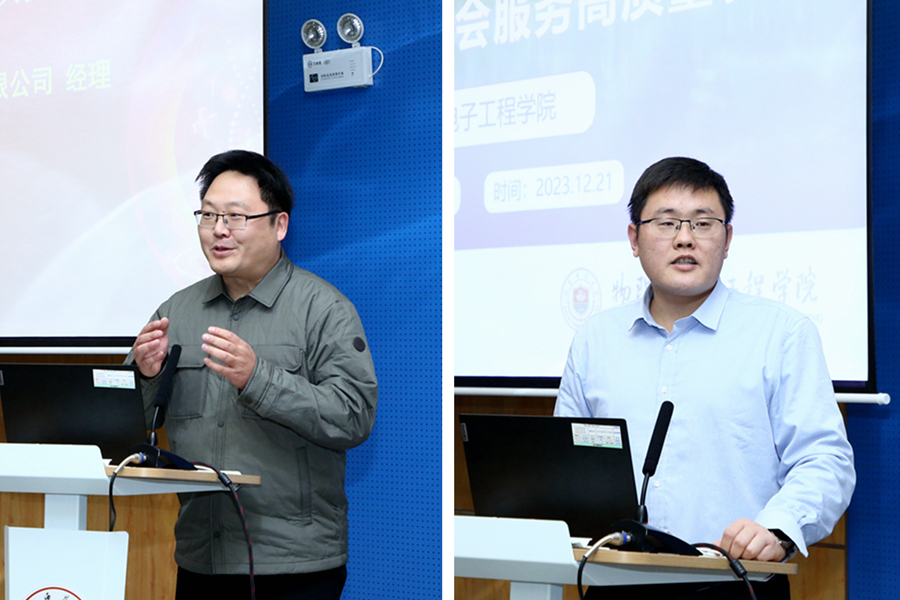 签约仪式和揭牌仪式结束后,企业代表江苏协鑫硅材料科技发展有限公司经理宫正介绍了企业情况,分享了对于合作的看法和期待,表达了对未来合作的信心和决心。随后,校方代表物理与电子工程学院院长李印威分享了学院在校企合作中探索及成功的经验。