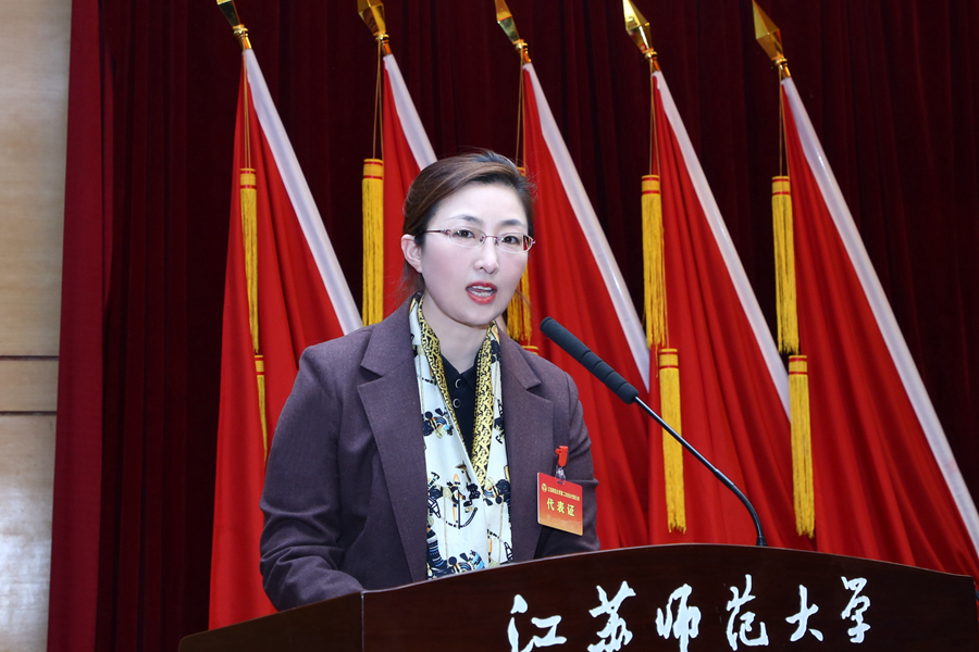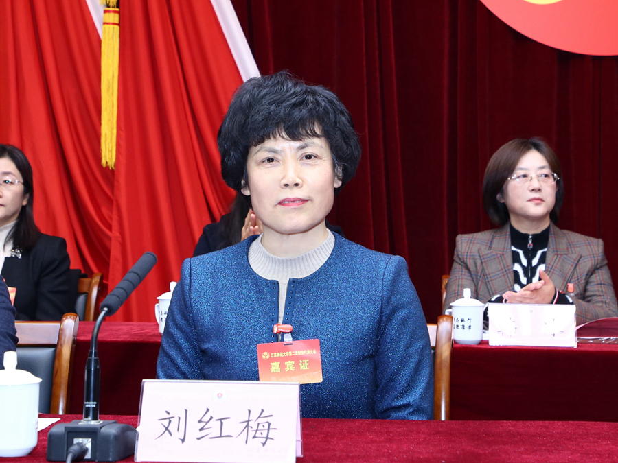 刘红梅宣读了同意召开江苏师范大学第二次妇女代表大会的批复文件,并向与会代表及全校女性师生致以美好祝愿;中国矿业大学妇委会主任夏军武代表兄弟高校致贺词,并希望两校妇女组织继续加强合作交流;校团委书记李丹代表校群团组织致贺词,表示将继续加强群团协作,共同为高水平大学建设作出新贡献。校妇联主席裴笛作了题为《砥砺奋进新征程 笃行筑梦绽芳华——团结带领女性师生为建设高水平师范大学贡献巾帼力量》的工作报告。报告回顾总结了学校第一次妇代会以来的工作,分析了当前妇女工作面临的新形势,明确了今后五年的目标任务。