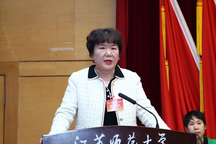 沈梅代表江苏省妇联向大会召开表示热烈祝贺,向关心支持妇女工作的学校领导表示衷心感谢,向江苏师大全体代表和女性师生致以诚挚问候。沈梅指出,做好新时代高校妇女工作,首先要坚持党的领导,在学思践悟中筑牢巾帼之魂;要勇担时代使命,在服务大局中勇建巾帼之功;要发挥独特作用,在修身齐家中展现巾帼之美;要加强改革创新,在联系发展中凝聚巾帼之力。希望师大妇联努力建设成为新时代的创新妇联、智慧妇联、开放妇联、暖心妇联、严实妇联,为全省高校妇女事业高质量发展注入活力、探索新路,提供示范样本。